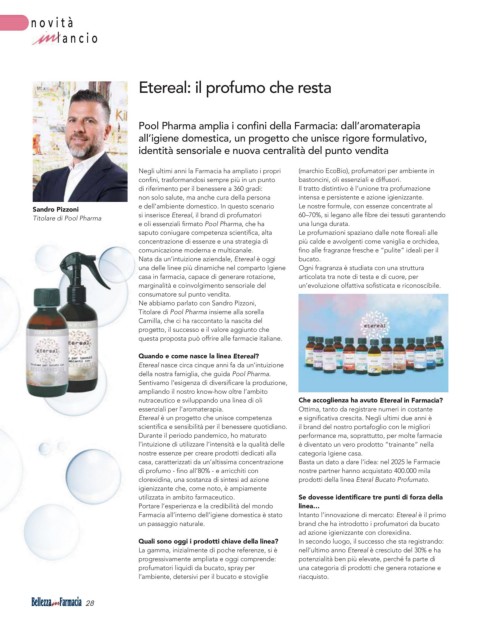 Titolare di Pool Pharma si inserisce Etereal, il brand di profumatori 60–70%, si legano alle fibre dei tessuti garantendo