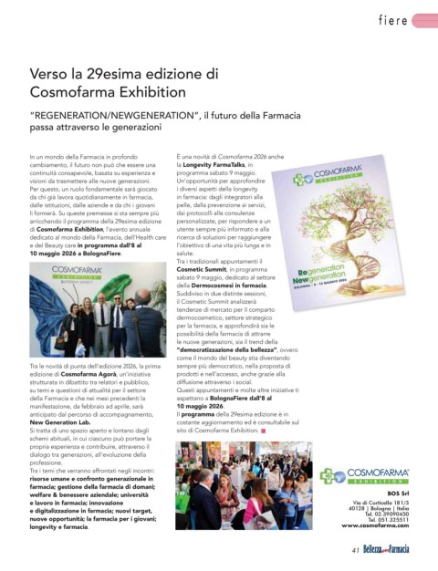 edizione di Cosmofarma Agorà, un’iniziativa prodotti e nell’accesso, anche grazie alla